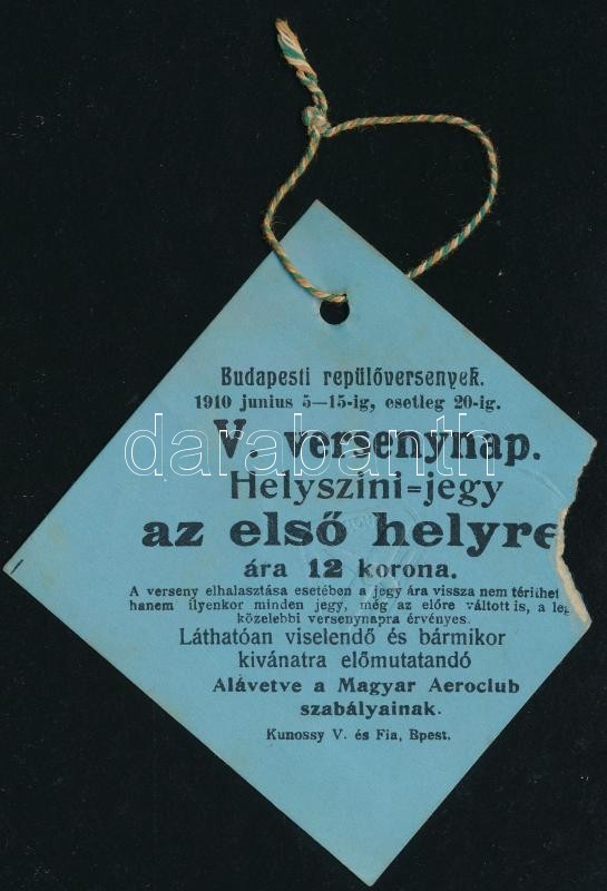1910 Budapesti repülőnap helyszíni belépőjegy https://www.darabanth.com/de/360-Fernauktion/360.0/Kunst-Dokumente-andere-Sammelgebiete/Dokument~500017/1910-Budapesti-repulonap-helyszini-belepojegy~II2076349