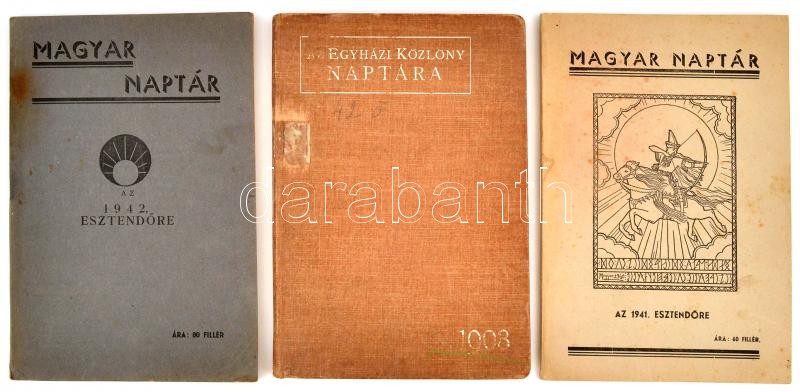 Beschreibung: 1908-42 Egyházi közlöny naptára, 2 db Magyar naptár