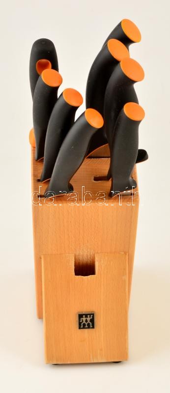 Beschreibung: Fiskars kés készlet fa asztai tartóban 7 db késsel + 1 élezővel