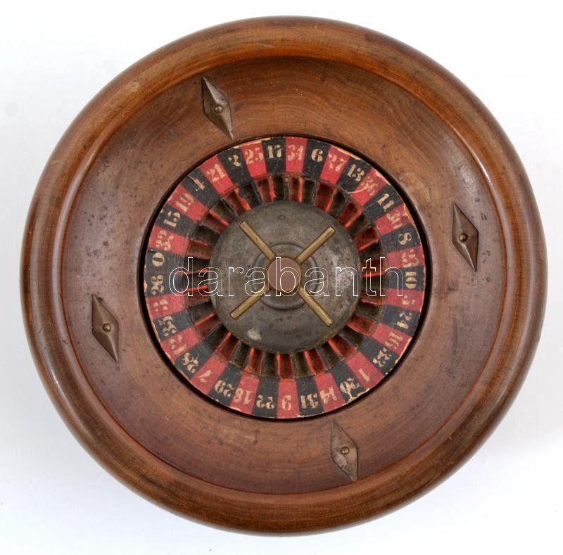 Mini fa rulett, kopott, golyó nélkül, m: 7,5 cm, d: 13,5 cm https://www.darabanth.com/de/360-Fernauktion/360.0/Kunst-Dokumente-andere-Sammelgebiete/Flohmarkt~500011/Mini-fa-rulett-kopott-golyo-nelkul-m-7-5-cm-d-13-5-cm~II2076249