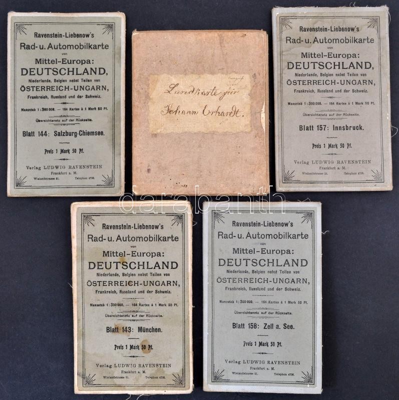 Beschreibung: cca 1910 5 db német osztrák autós térkép vásznon / 5 automobile maps