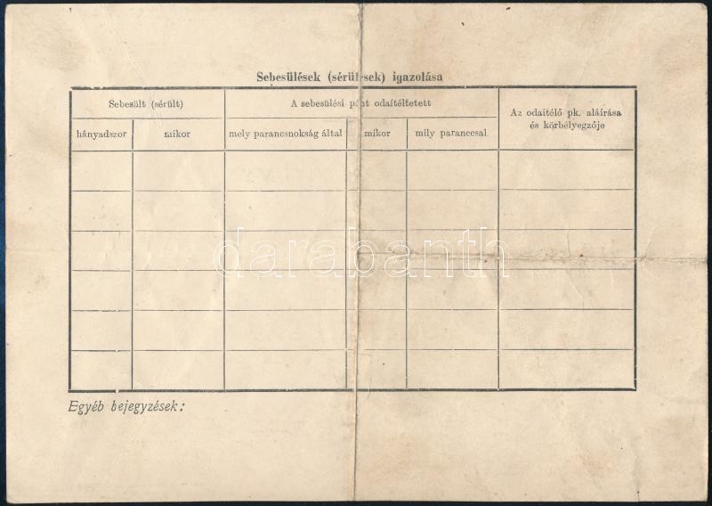 Beschreibung: 1944 M. kir. 104. honvéd fogatolt vonatcsoport parancsnoksága által kiállított igazolás tűzkereszt viselésének jogosultságáról