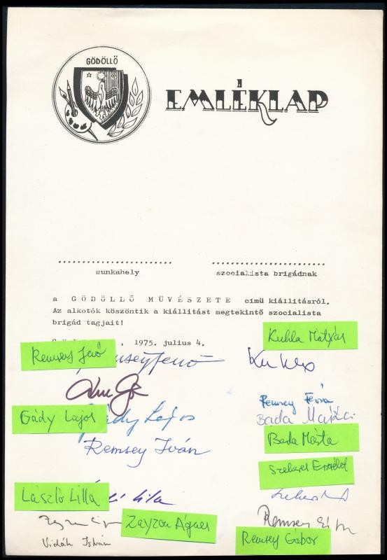 1975 Gödöllő kiállítási emléklap neves grafikusok, festők aláírásaival... https://www.darabanth.com/de/360-Fernauktion/360.0/Kunst-Dokumente-andere-Sammelgebiete/Signatur~500019/1975-Godollo-kiallitasi-emleklap-neves-grafikusok-festok-alairasaival-Remsey-Gady-LC3~II2059762