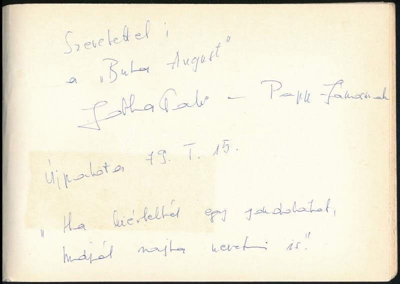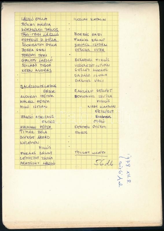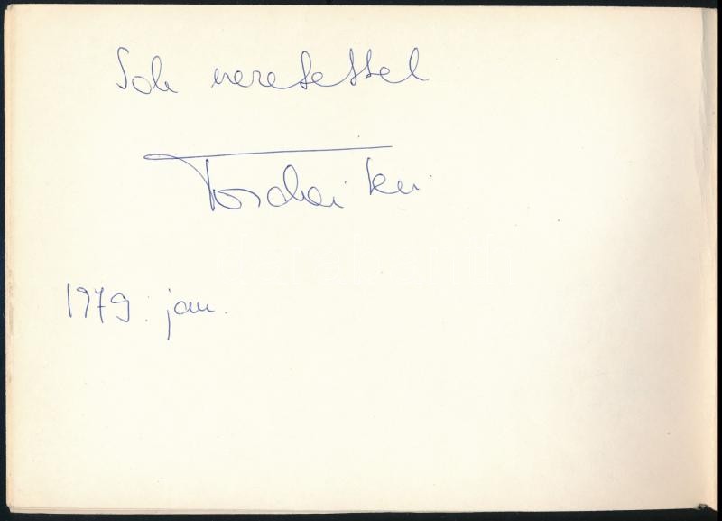 Aláírásgyűjtemény magyar színészek aláírásaival egy füzetben Összesen 56 db. Körmendi János, Tahi-Tóth László, Tordai Teri, Gálffy Ottó, Kern András, Haumann Péter, Venczel Vera, Tolnay Klári és sokan mások