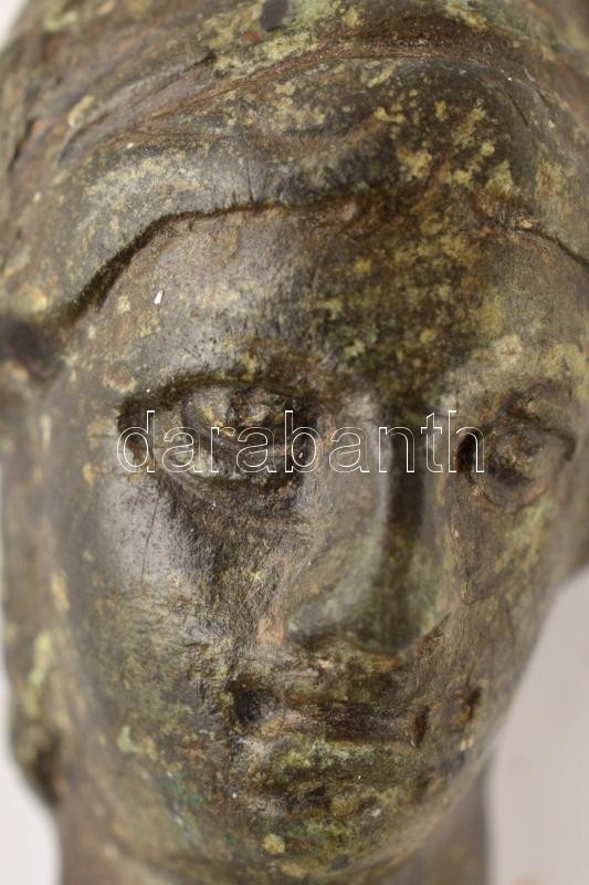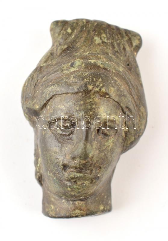 Júnó istennőt ábrázoló római kori bronz fej. 33 mm