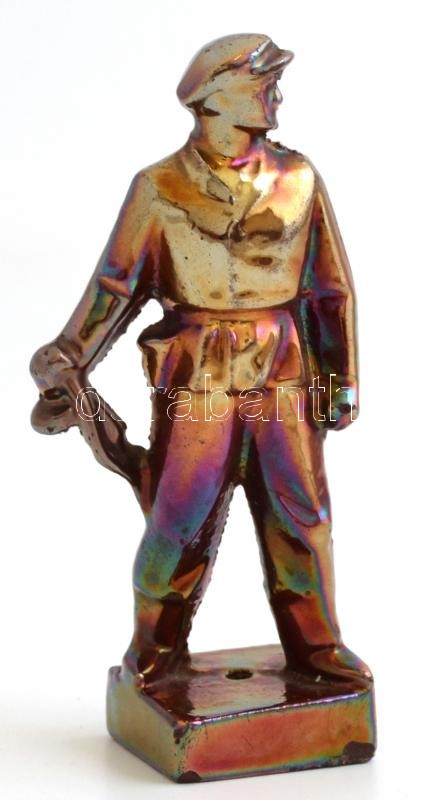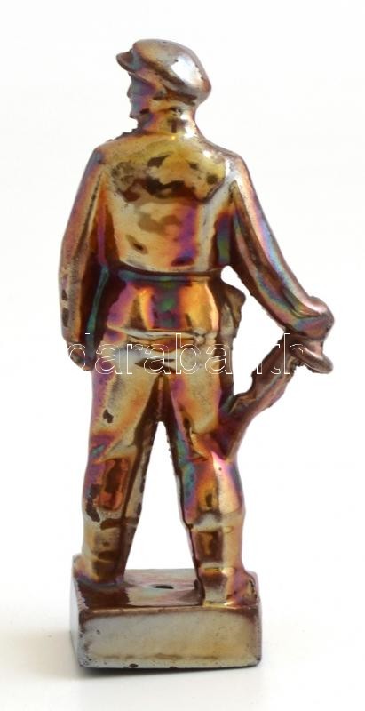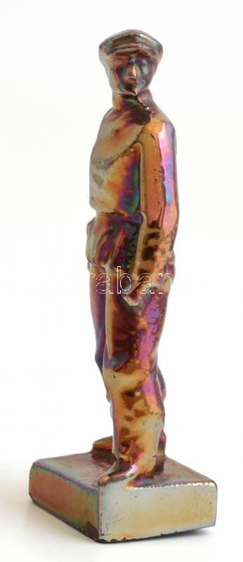 Katonai gépkarabéllyal, vas szobor, m: 15 cm