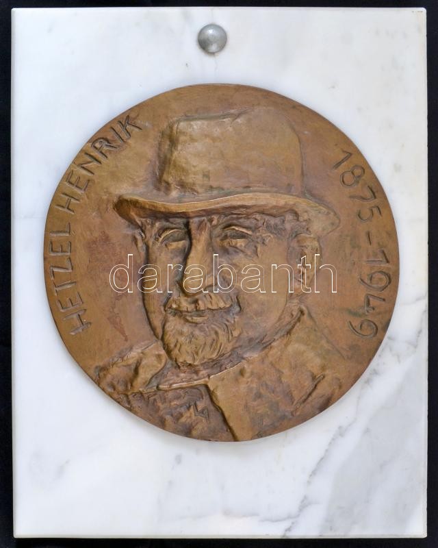 Végh Attila: Hetzel Henrik 1875-1949. Bronz plakett. Jelzett d: 21 cm. Fehér márvány lapon 32x25 cm