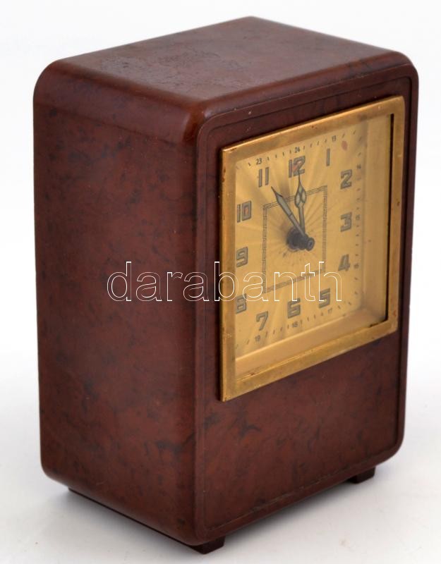 Beschreibung: cca 1940 Magyar Országos Központi Takarékpénztár (az OTP elődje) art deco persely-óra, működő állapotban, kulcs nélkül 9x13 cm