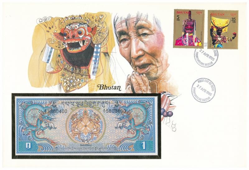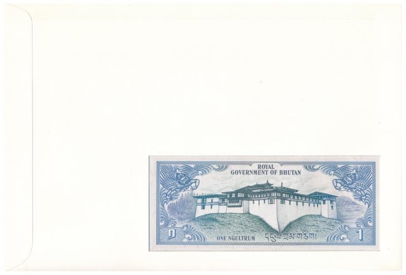 Bh... https://www.darabanth.com/de/360-Fernauktion/360.0/Numismatik/Umschlage-mit-Munzen-und-Banknoten~2000004/Bhutan-1N-7E1981-boritekban-alkalmi-belyeggel-es-belyegzessel-TI-Bhutan-7E1981-1-Ngultrum-i~II2074834