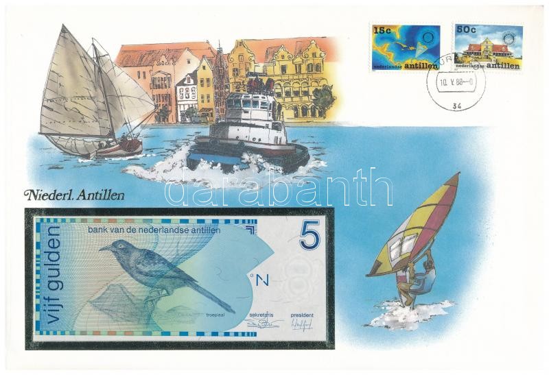 Beschreibung: Holland-Antillák 1986. 5G borítékban, alkalmi bélyeggel és bélyegzéssel T:I