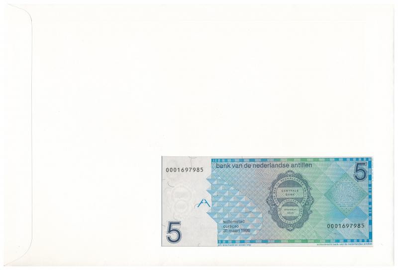 Netherlands Antilles 1986. 5 Gulden in envelope with stamps and cancellations C:UNC