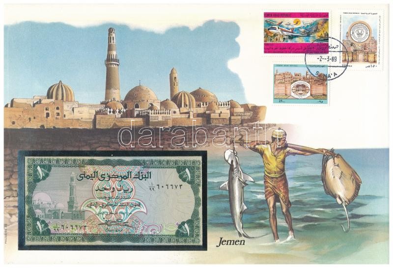 Yem... https://www.darabanth.com/de/360-Fernauktion/360.0/Numismatik/Umschlage-mit-Munzen-und-Banknoten~2000004/Jemen-1973-1R-boritekban-alkalmi-belyeggel-es-belyegzessel-TI--Yemen-1973-1-Rial-in-envel~II2074190