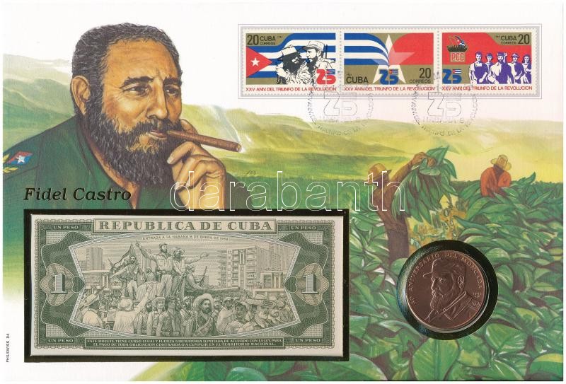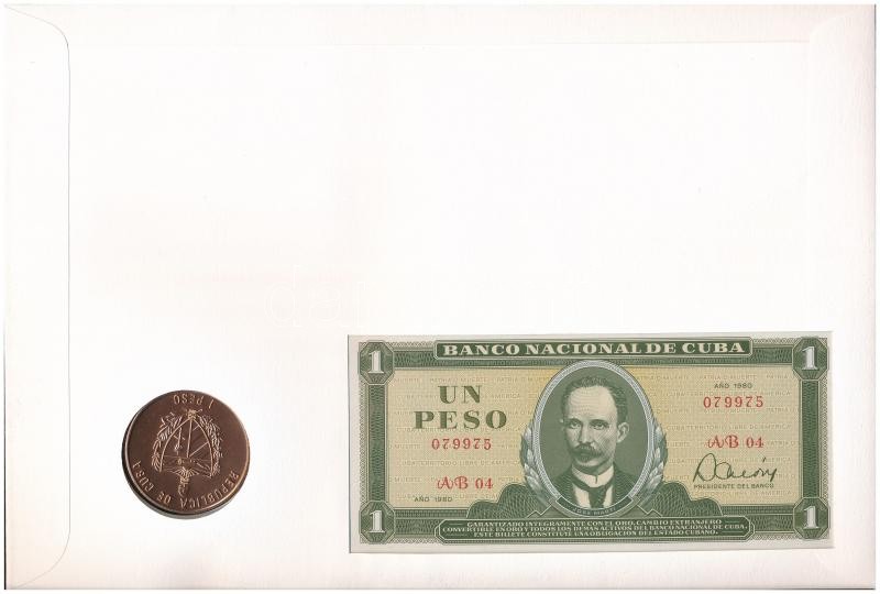 Kuba érmés és bankjegyes, pecsételt boríték benne 1993. 1P "Moncada 40. évfordulója" Cu érmével és 1980. 1P bankjeggyel a PHILSWISS kiadásában, német leírással T:1,I