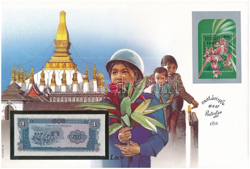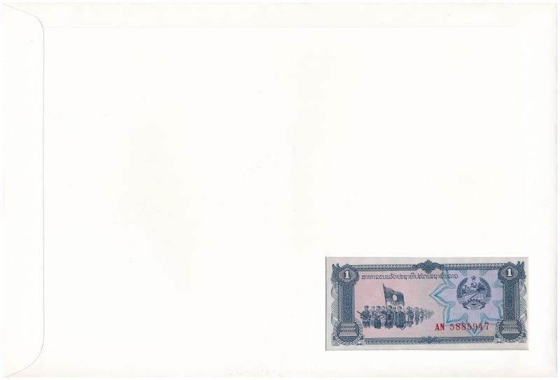 Lao 1979. ... https://www.darabanth.com/de/360-Fernauktion/360.0/Numismatik/Umschlage-mit-Munzen-und-Banknoten~2000004/Laosz-1979-1K-felbelyegzett-boritekban-belyegzessel-TI--Lao-1979-1-Kip-in-envelope-with-st~II2074923