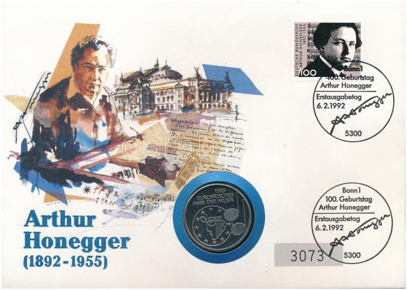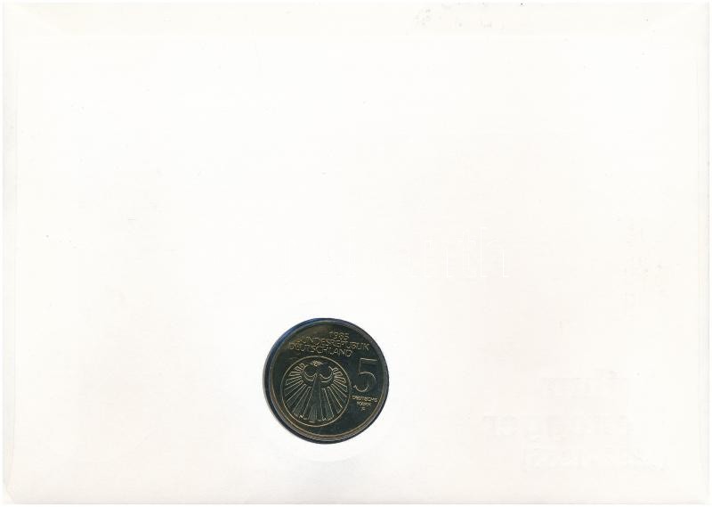 NSZK 1985F 5M Cu-Ni "A zene európai éve" felbélyegzett borítékban, bélyegzéssel T:1- patina