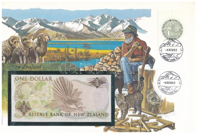 Új-Zéland 1985-1989. 1$ borítékban, alkalmi bélyeggel és bélyegzéssel T:I