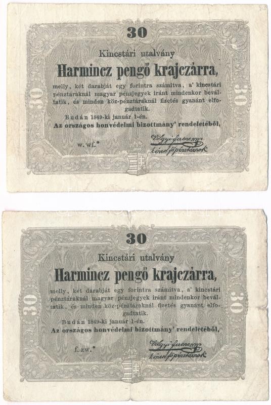 Beschreibung: 1849. 30kr (2x) "Kossuth bankó" T:III,III- Adamo G103