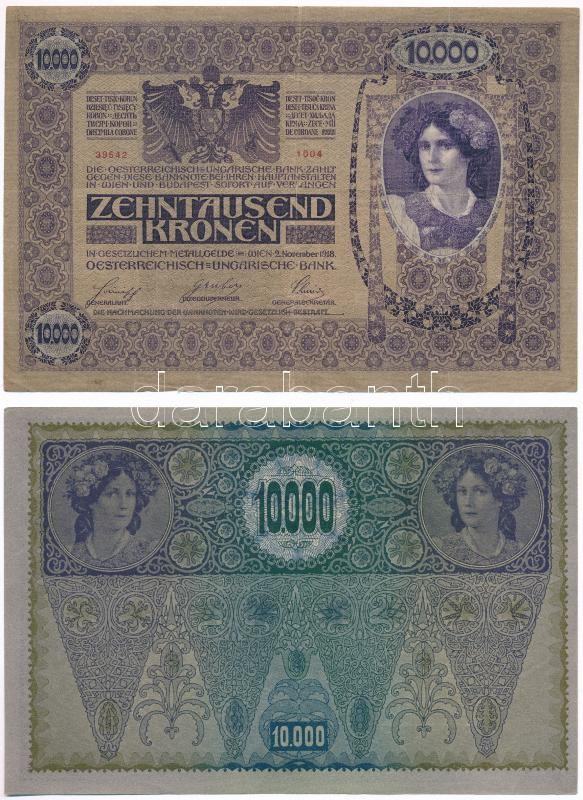 1918. 10.000K piros "MAGYARORSZÁG" felülbélyegzéssel + 1918.... https://www.darabanth.com/de/360-Fernauktion/360.0/Numismatik/Ungarische-Banknoten~2000007/1918-10000K-piros-MAGYARORSZAG-felulbelyegzessel-plus-1918-10000K-hatlap-rajzos-DEUTSCHOS~II2070441