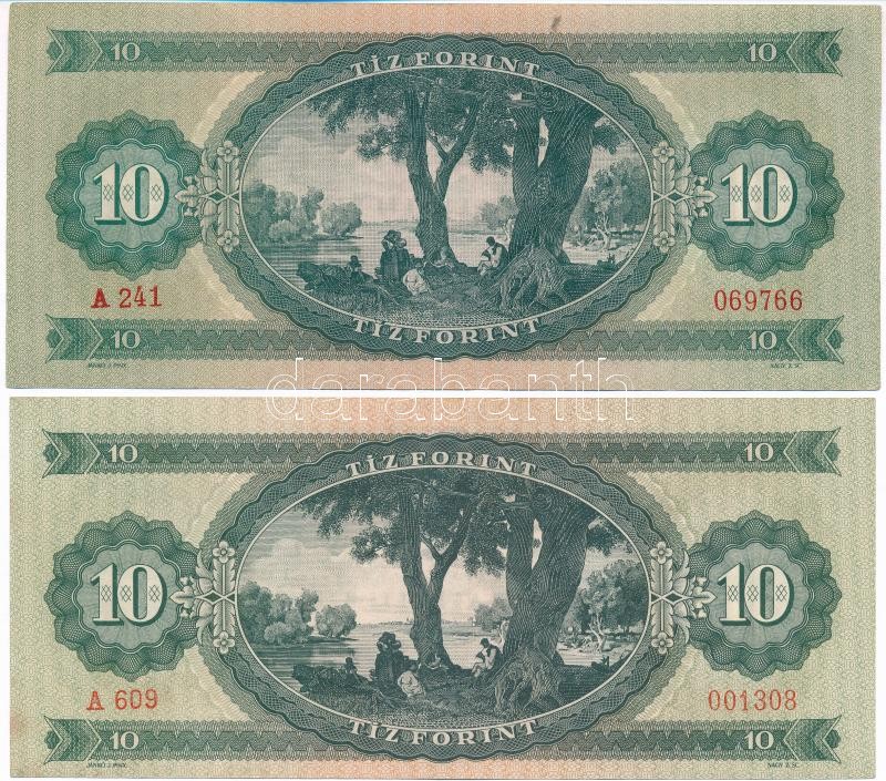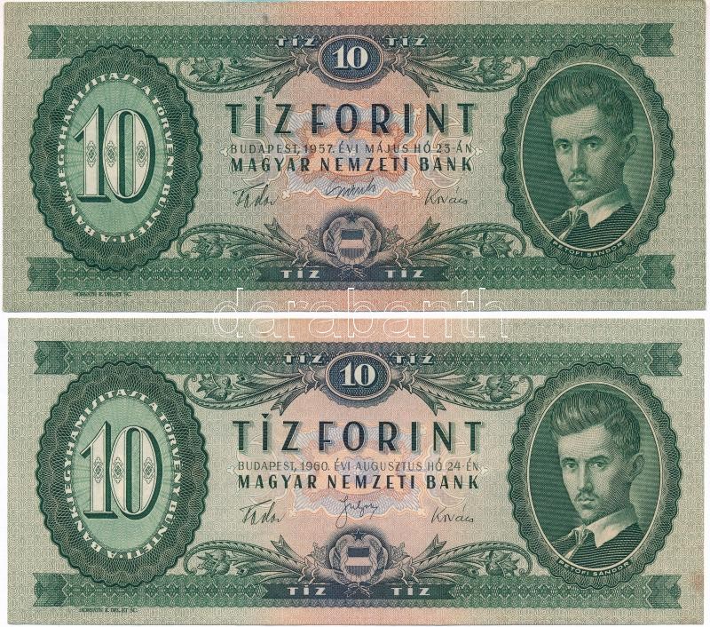 1957. 10Ft + 1960. 10Ft T:I,I- https://www.darabanth.com/de/360-Fernauktion/360.0/Numismatik/Ungarische-Banknoten~2000007/1957-10Ft-plus-1960-10Ft-TI-I-~II2072786