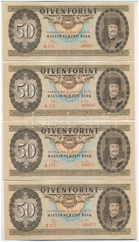 Beschreibung: 1969. 50Ft (4x) közte 2db sorszámkövető és 2db közeli sorszám T:I