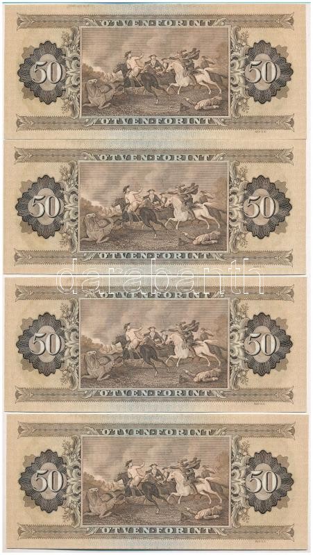 1969. 50Ft (4x) közte 2db sorszámkövető és 2db közeli sorszám T:I https://www.darabanth.com/de/360-Fernauktion/360.0/Numismatik/Ungarische-Banknoten~2000007/1969-50Ft-4x-kozte-2db-sorszamkoveto-es-2db-kozeli-sorszam-TI~II2077611