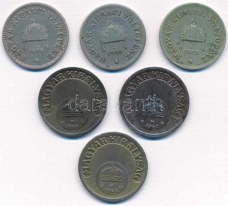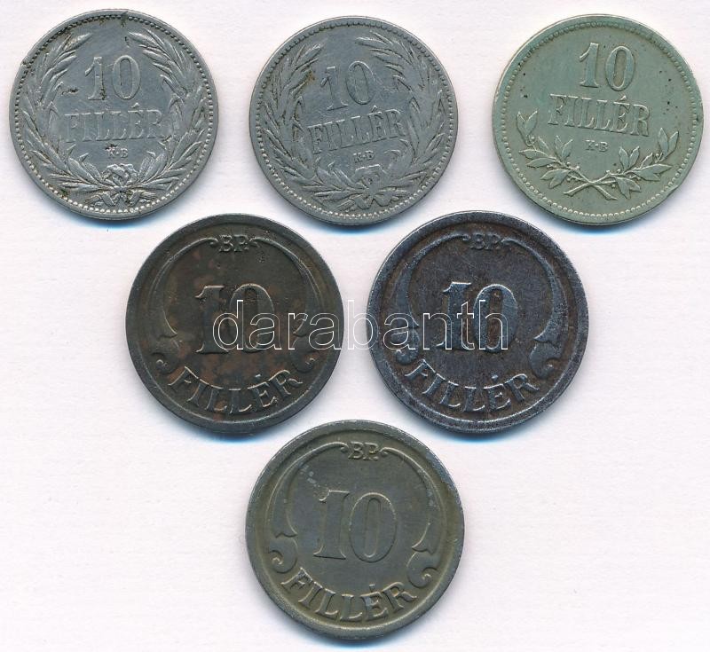 1894-1942. 10f (6x) T:2,2- https://www.darabanth.com/de/360-Fernauktion/360.0/Numismatik/Ungarische-Munzen-und-Munzen-mit-ungarischem-Munzzeichen~2000008/1894-1942-10f-6x-T2-2-~II2069891