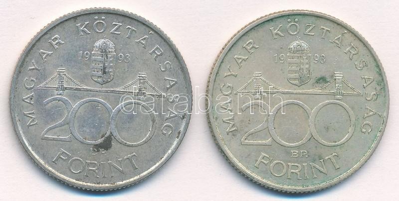 1993. 200Ft Ag "MNB" (2x) T:1-,2 kis patina