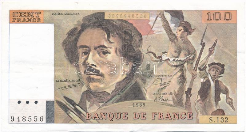 France 1989. 100 Francs C:F pi... https://www.darabanth.com/de/360-Fernauktion/360.0/Numismatik/Weltweit-Banknoten~2000013/Franciaorszag-1989-100Fr-TIII-tunyom-France-1989-100-Francs-CF-pinhole~II2073192