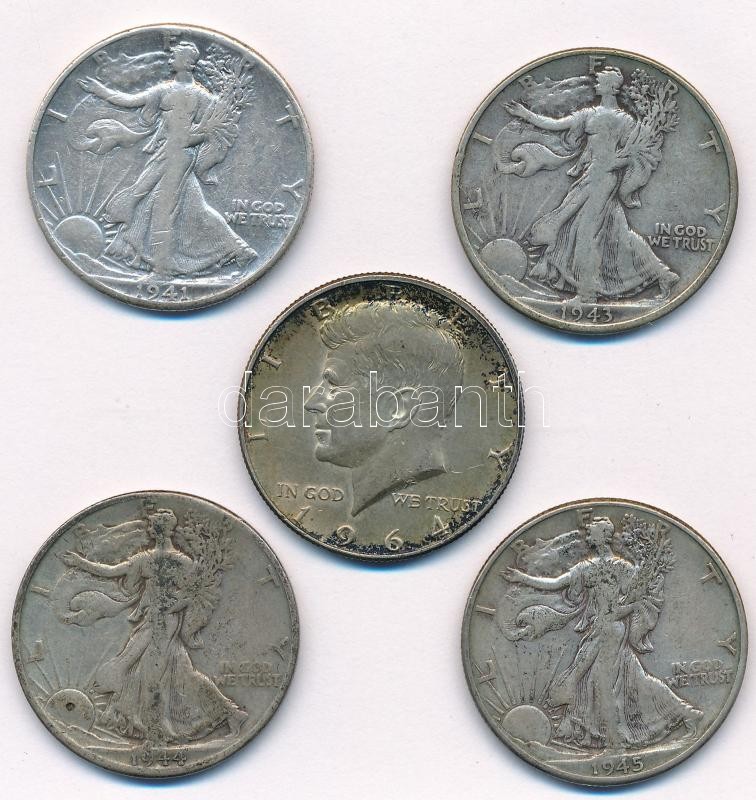 Beschreibung: Amerikai Egyesült Államok 1941-1964. 1/2$ Ag (5xklf) T:2-3 patina