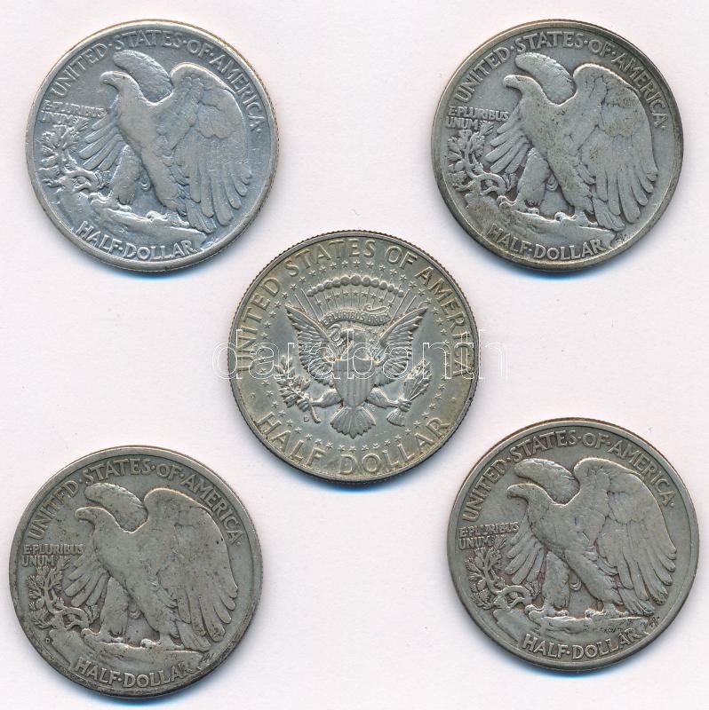 Amerikai Egyesült Államok 1941-1964. 1/2$ Ag (5xklf) T:2-3 patina