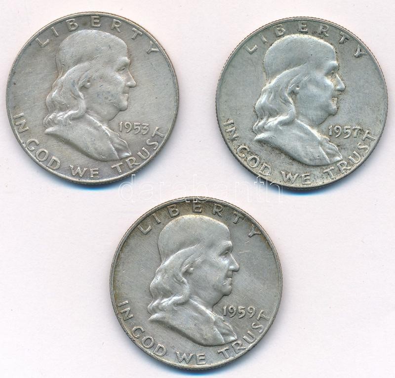 Amerikai Egyesült Államok 1953D-1959D 1/2$ Ag "Franklin" (3x... https://www.darabanth.com/de/360-Fernauktion/360.0/Numismatik/Weltweit-Munzen~2000014/Amerikai-Egyesult-Allamok-1953D-1959D-12USD-Ag-Franklin-3xklf-T2-2--USA-1953D-1959D-12-Doll~II2078105