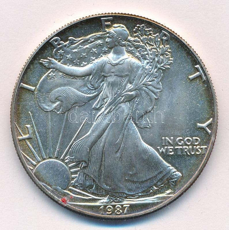 Amerikai Egyesült Államok 1987. 1$ Ag "Amerikai Sas" eredeti tokban, tanúsítvánnyal T:BU patina USA 1987. 1 Dollar Ag "American Eagle" in original case, with certificate C:BU patina