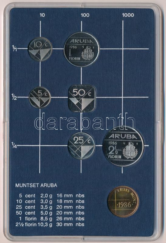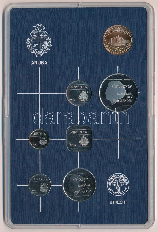 Aruba 1986. 5c-2 1/2Fl (6xklf) + "Utrechti Verde" zseton plasztiktokos szettben T:1 Aruba 1986. 5 Cents - 2 1/2 FLorin (6xdiff) + "Utrecht Mint" jeton in plastic case C:UNC