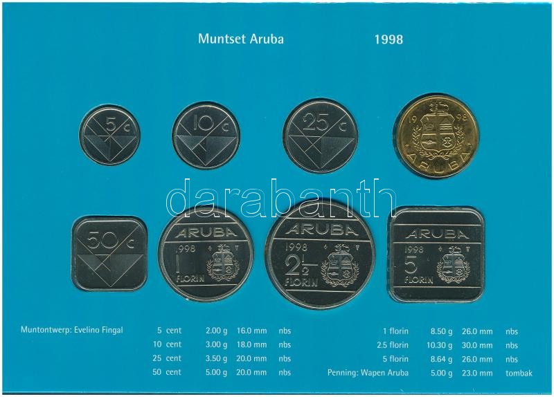 ... https://www.darabanth.com/de/360-Fernauktion/360.0/Numismatik/Weltweit-Munzen~2000014/Aruba-1998-5c-5Fl-7xklf-plus-Aruba-emlekerem-szettben-T1-Aruba-1998-5-Cents-5-Florin-7xdif~II2072874