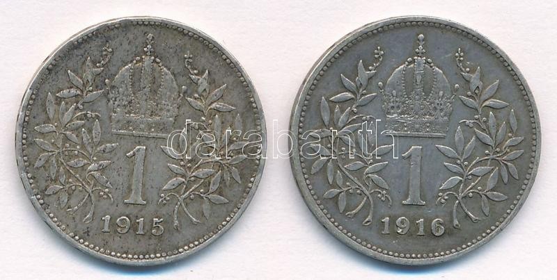 Ausztria 1915-1916. 1K Ag "Ferenc József" (2xklf) T:2 Austria 1915-1916. 1 Corona Ag "Franz Joseph" (2xdiff) C:XF