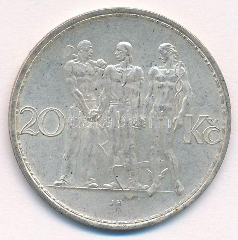 Csehszlovákia 1933. 20K Ag "Ipar, mezőgazdaság, üzlet" T:1,1- Czechoslovakia 1933. 20 Korun Ag "Industry, Agriculture, Business" C:UNC, AU Krause KM#17
