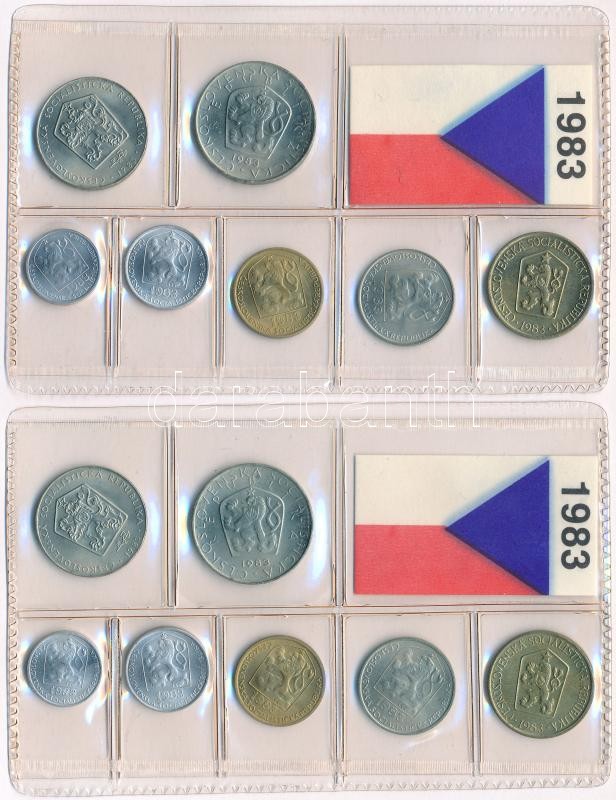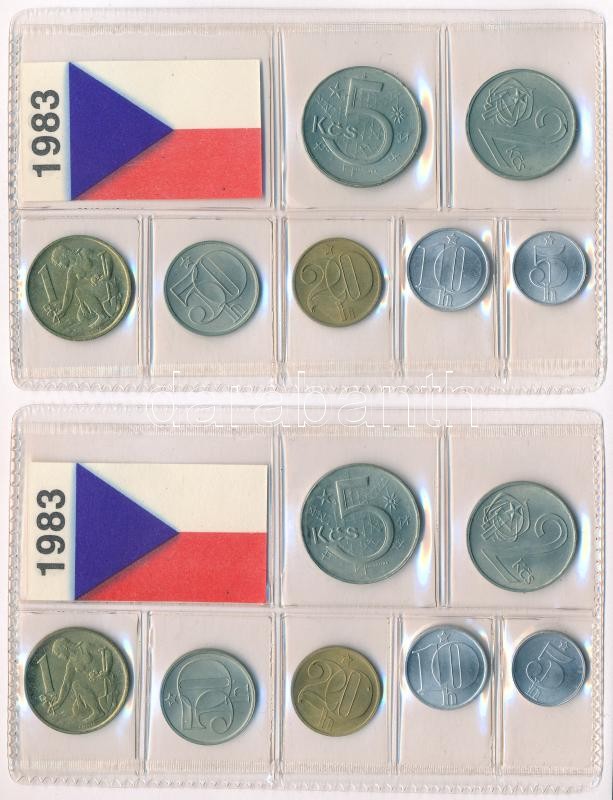 C... https://www.darabanth.com/de/360-Fernauktion/360.0/Numismatik/Weltweit-Munzen~2000014/Csehszlovakia-1983-5h-5K-7xklf-forgalmi-sor-foliatokban-2x-T1-Czechoslovakia-1983-5-Haleru~II2075893