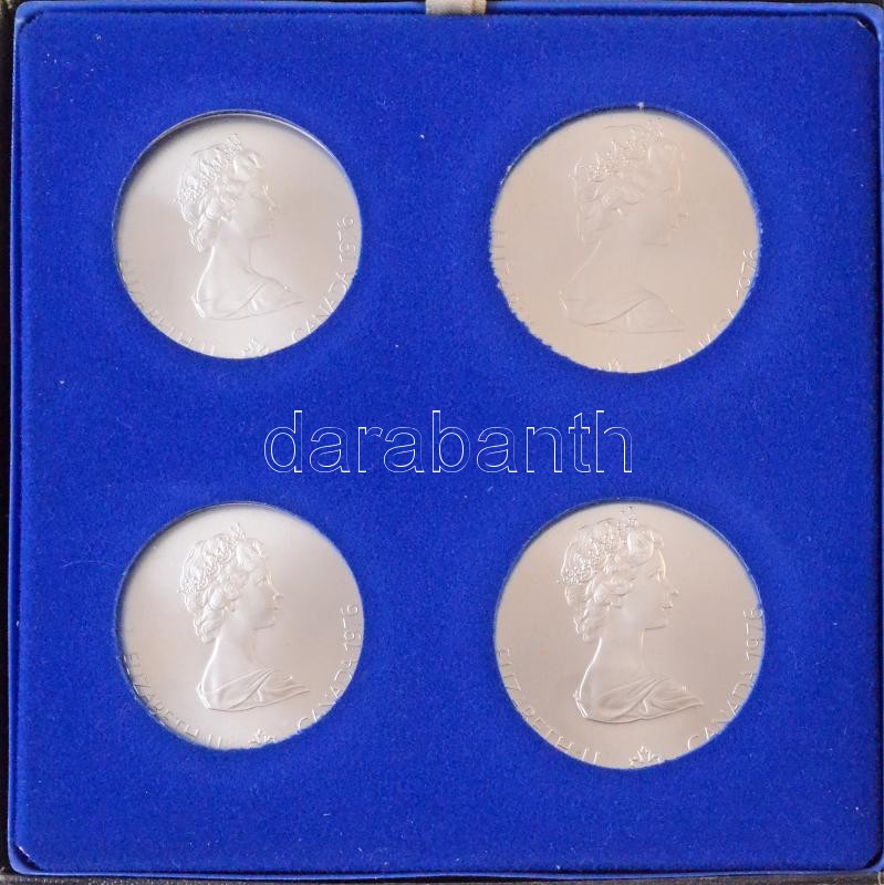 Kanada 1976. 5$ Ag (2xklf) "Olimpiai falu", "Olimpiai láng"+ 10$ Ag (2xklf) "Olimpiai Stadion", "Olimpiai Velodrom"; "Montreali Olimpia" sorozat eredeti dísztokban T:BU