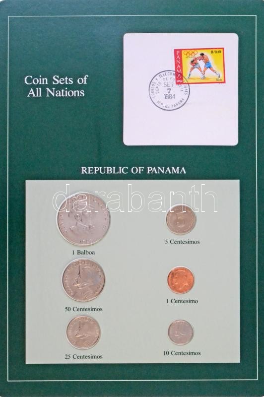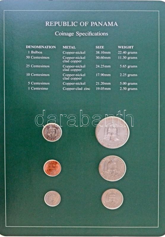 Panama 1982-1983. 1c - 1B (6xklf), "Coin Sets of All Nations" forgalmi szett felbélyegzett kartonlapon T:1, 2 Panama 1982-1983. 1 Centesimo - 1 Balboa (6xdiff) "Coin Sets of All Nations" coin set on cardboard with stamp C:UNC, XF