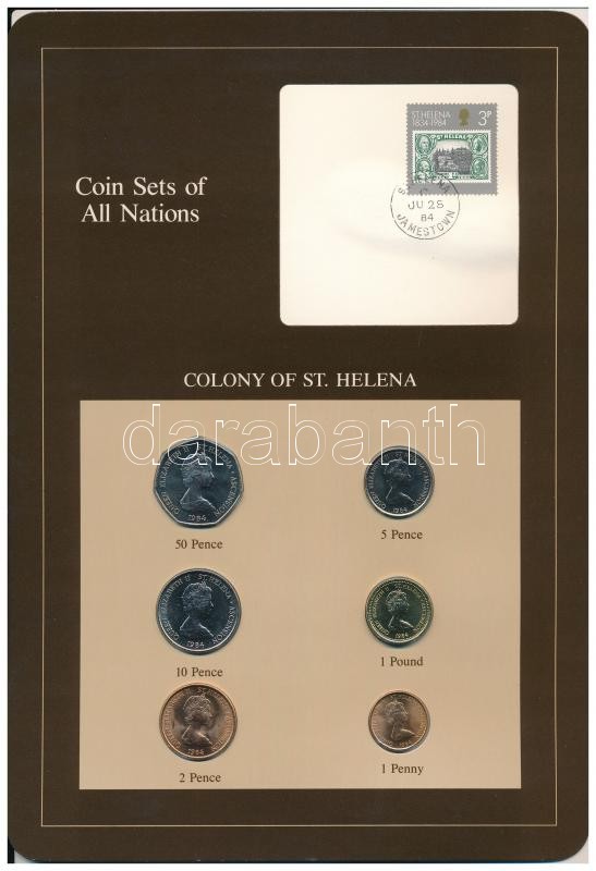 St. Helena 1984. 1 Penny - 1 Pound (6xdiff) "Coin Sets of All Nations" coin set on cardboard with stamp C:AU