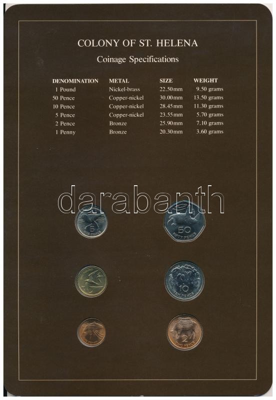 Szent Ilona 1984. 1P - 1Ł (6xklf), "Coin Sets of All Nations" forgalmi szett felbélyegzett kartonlapon T:1-