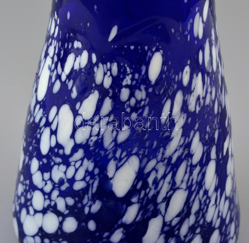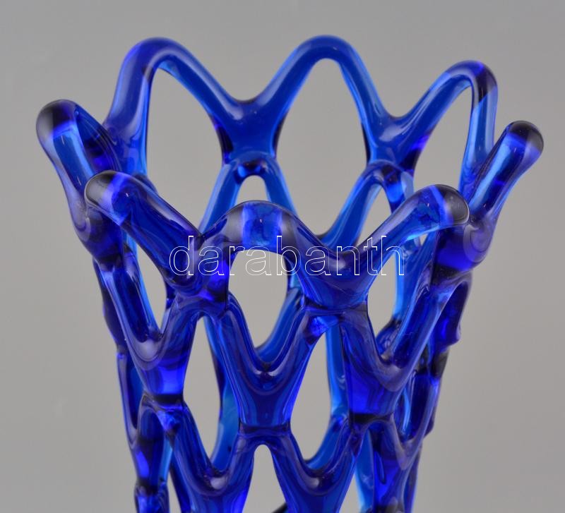 Beschreibung: Fújt áttört tetejű váza, anyagában színezett, karcolásokkal, m: 36 cm