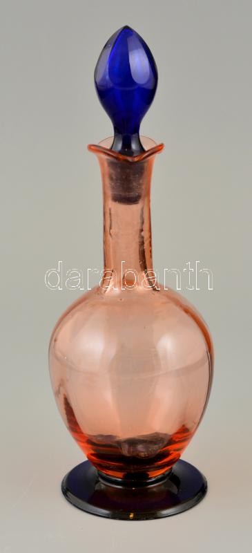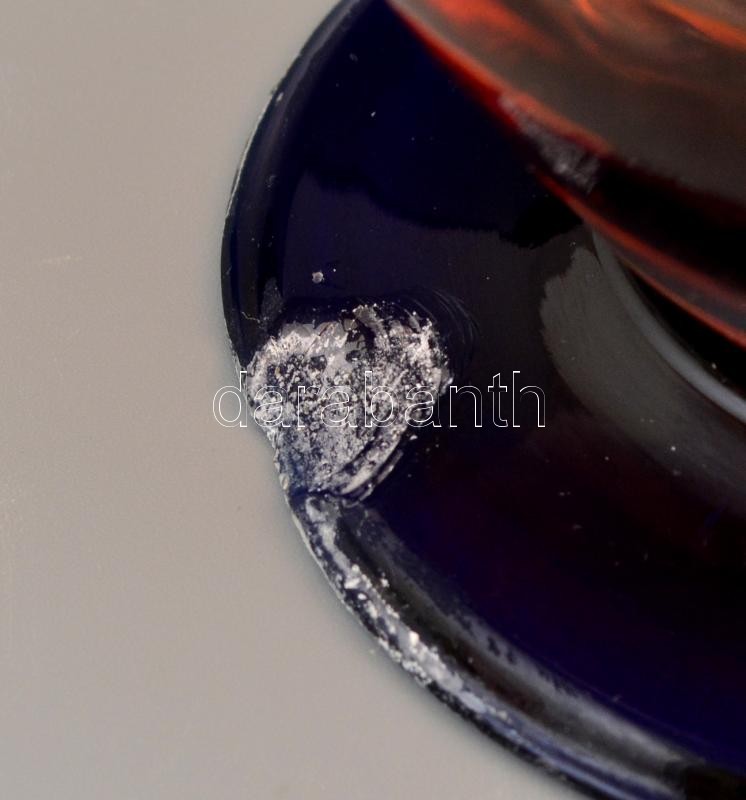 Beschreibung: Hutaüveg likőrös készlet, 4 db pohár + kiöntő, csorbával
