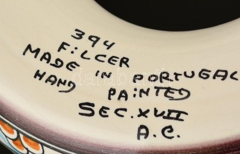 Portugál kerámia füstölő tartó kézzel festett, XVI. sz-i díszítéssel d... https://www.darabanth.com/de/360-Fernauktion/360.0/Porzellan-Keramik-Glass/Keramiken~500006/Portugal-keramia-fustolo-tarto-kezzel-festett-XVI-sz-i-diszitessel-d17-cm~II2069515