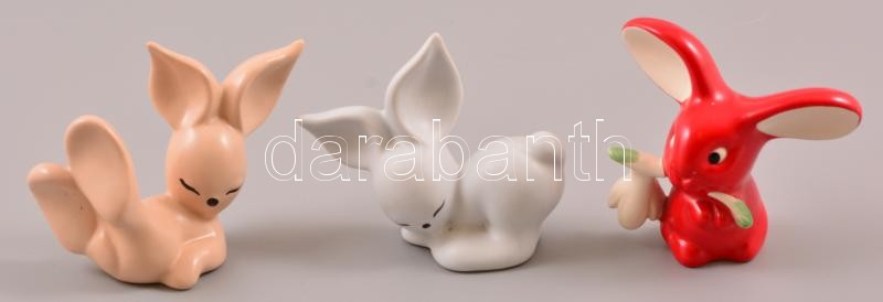 Beschreibung: Goebel nyuszik (3 db), fehér mázas (kézzel festett), jelzett (2 db) , apró kopás nyomokkal, m: 5,5 cm