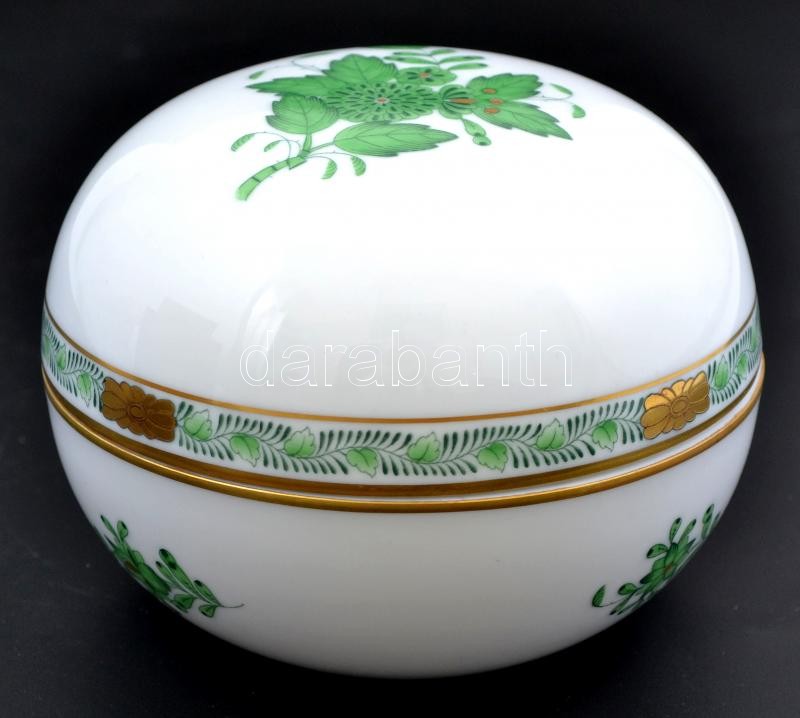 Herendi Apponyi mintás porcelán bonbonnier. Kézzel festett, jelzett, h... https://www.darabanth.com/de/360-Fernauktion/360.0/Porzellan-Keramik-Glass/Porzellan~500007/Herendi-Apponyi-mintas-porcelan-bonbonnier-Kezzel-festett-jelzett-hibatlan-d-13-cm~II2070195