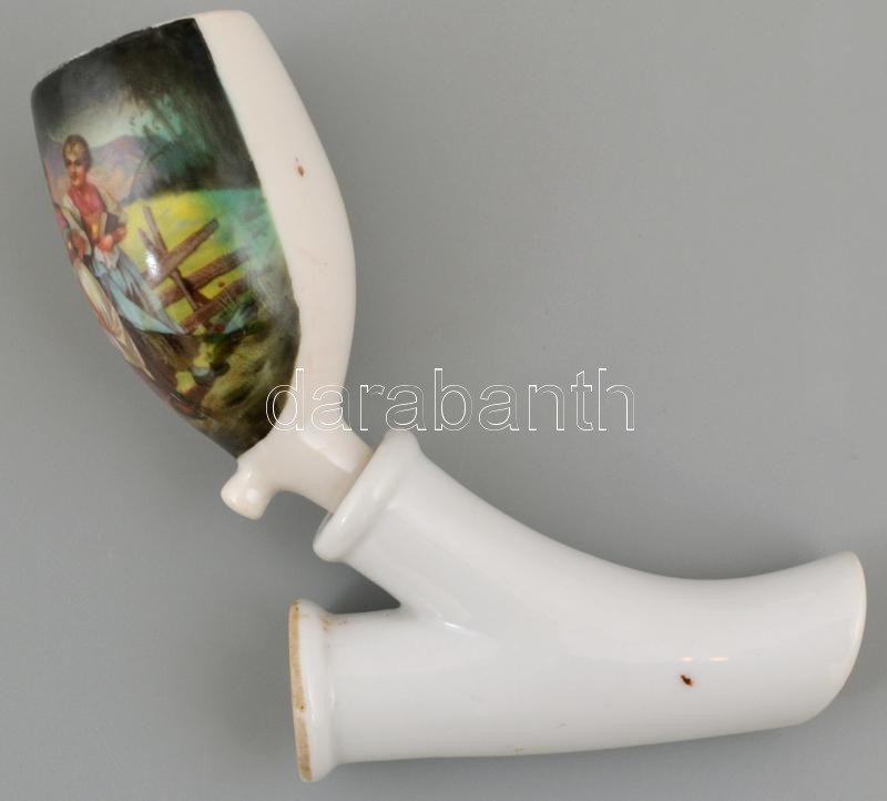 Porcelán pipafej, matricás, jelzés nélkül, kis kopásnyomokkal, h: 13 c... https://www.darabanth.com/de/360-Fernauktion/360.0/Porzellan-Keramik-Glass/Porzellan~500007/Porcelan-pipafej-matricas-jelzes-nelkul-kis-kopasnyomokkal-h-13-cm~II2070032