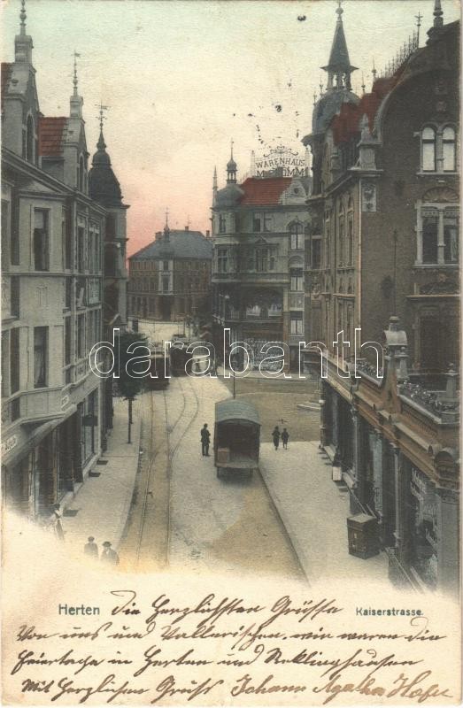 Herten, Kaiserstrasse, Warenhaus / street, trams, shop (Rb) https://www.darabanth.com/de/361-Fernauktion/361.0/Ansichtskarten/Deutschland~1500070/Herten-Kaiserstrasse-Warenhaus-street-trams-shop-Rb~II2082052