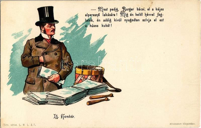 Beschreibung: Ifj. Hombár. Athenaeum kőnyomása L.M.L. & F. / Hungarian lawyer, litho