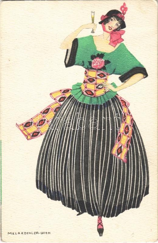Lady with a glass of champagne. B.K.W.I. 3142-2. s: Mela Koehler (EK) https://www.darabanth.com/de/361-Fernauktion/361.0/Ansichtskarten/Kunstlerkarten~1500075/Lady-with-a-glass-of-champagne-BKWI-3142-2-s-Mela-Koehler-EK~II2080647